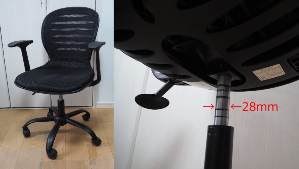 高さを調整できる椅子を使っていましたが、アジャスターのガスが抜けてしまったのか、時々座ったタイミングで低くなってしまうようになりました。使いたい高さは決まっているので、高さを固定するものを3Dプリンターで作りました。